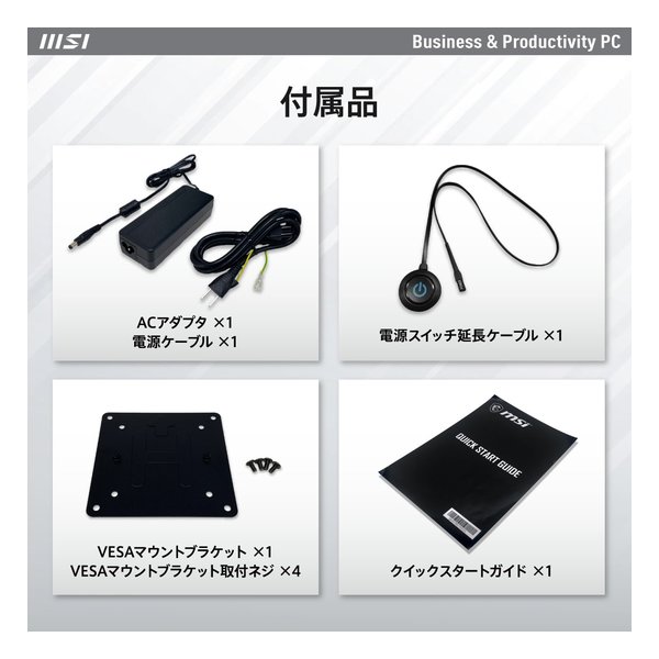 ■付属品:電源スイッチ延長ケーブル×1 電源ケーブル×1 ACアダプタ×1 VESAマウントブラケット(75/100対応)×1 VESAマウントブラケット取付ネジ×4 クイックスタートガイド×1