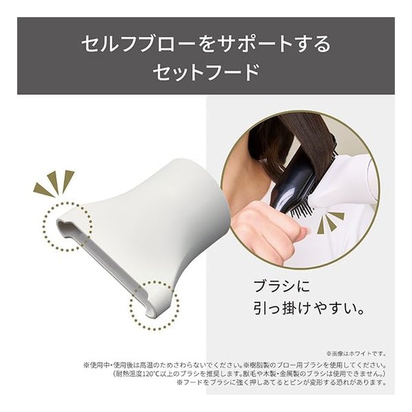 ●ブロー時にフードの先端がブラシに固定しやすい、オリジナルデザインです。