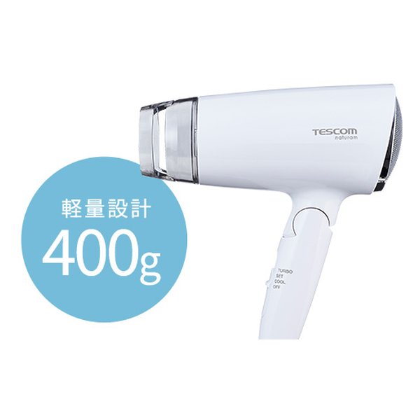 ●重さわずか400g。従来機種(TID190/TID295)よりもコンパクトに軽量化し、更に疲れにくく、扱いやすいドライヤーに。ご年配のかたからお子さままで、ファミリーユースにぴったりなドライヤーです。