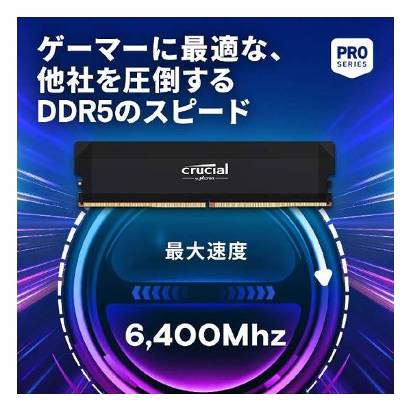 驚異的な速度と広い帯域幅を備えたCrucial DDR5 Pro OCゲーミングメモリ(2637705)DDR5 PC5-51200 16GB 2枚組