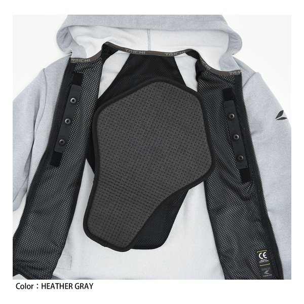 肩・肘には、衝撃吸収性能と柔軟性に優れたCE Lv.1プロテクター(ソフトタイプ)、背中にはフォームパッドを内蔵。