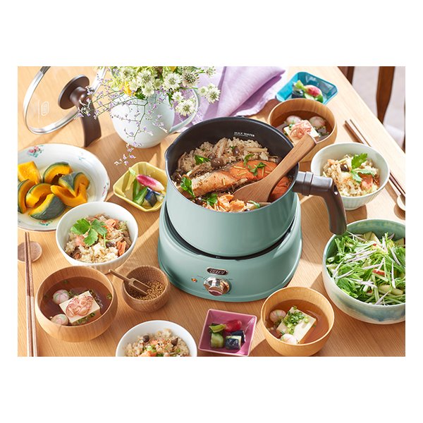 炊飯器としても使えて、2合のお米が炊けるちょうどよいサイズ感!