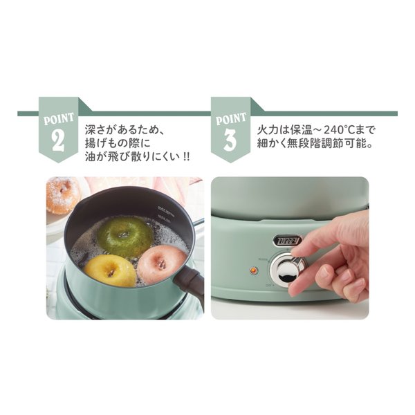 ●火力は保温〜240℃まで細かく無段階調理可能。