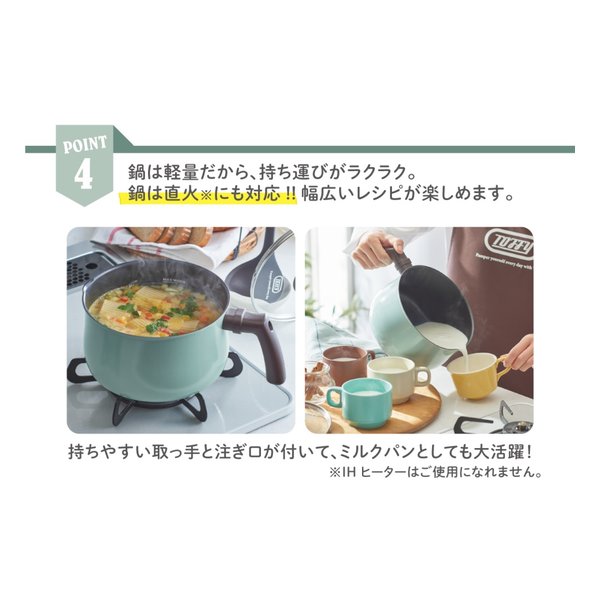 持ちやすい取っ手と注ぎ口が付いて、ミルクパンとしても大活躍!
