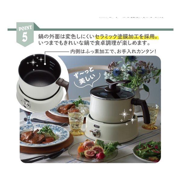 いつまでもきれいな鍋で食卓調理が楽しめます。