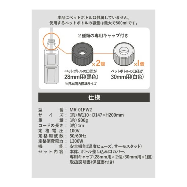 ■セット内容:本体、ボトル差し込み口カバー、キャップ2種(28mm用×2個/30mm用×1個)、取扱説明書(保証書付き)