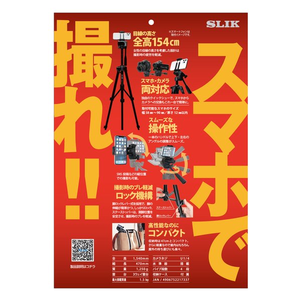 クイックシューのホルダー部分を起こすだけでスマートフォンを取り付けできる、スリック独自のクイックシューです。