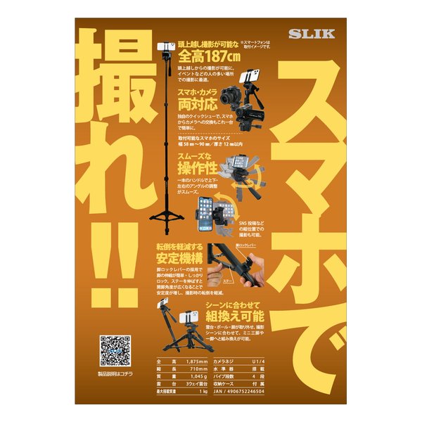 クイックシューに組み込まれたスマホホルダーで、簡単に取り付けできます。