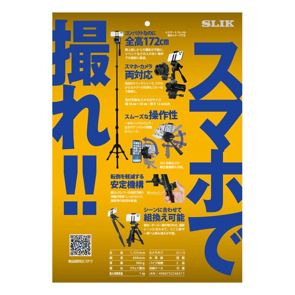 クイックシューに組み込まれたスマホホルダーで、簡単に取り付けできます。