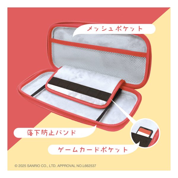 イヤホンや小物が収納できる[メッシュポケット]、ゲームソフトが収納できる[ゲームカードポケット] がついており、