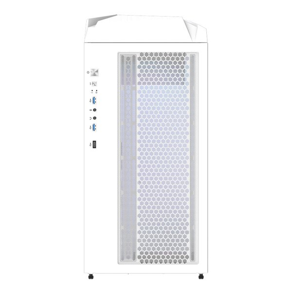 冷却性能を重視し、メッシュ加工のフロントパネルと通気性の高いトップパネルを採用しています。