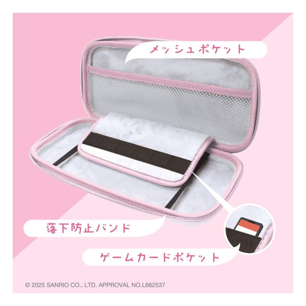 イヤホンや小物が収納できる[メッシュポケット]、ゲームソフトが収納できる[ゲームカードポケット] がついており、