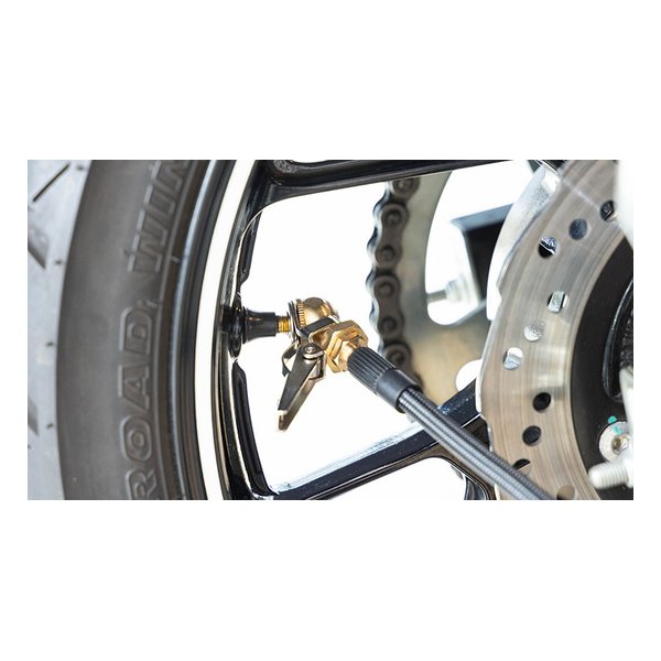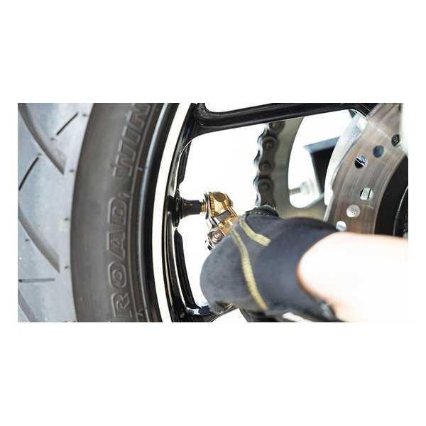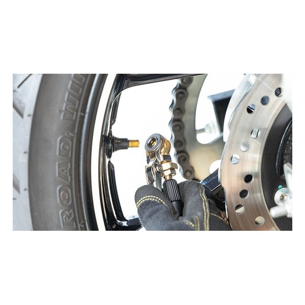 バイクタイヤの空気入れ作業は、時間との勝負。
