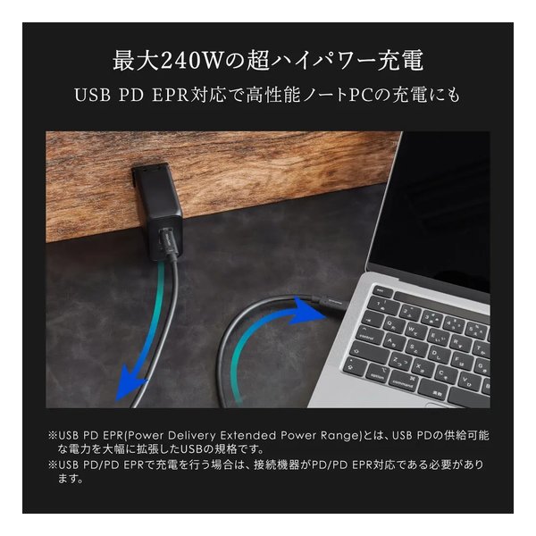 最新のUSB Power Delivery EPR(Extended Power Range)に対応。