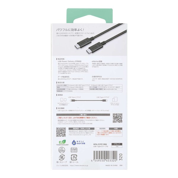 ●最大240Wでパワフルかつ効率的に充電できるUSB Type-C(TM)ケーブルです。
