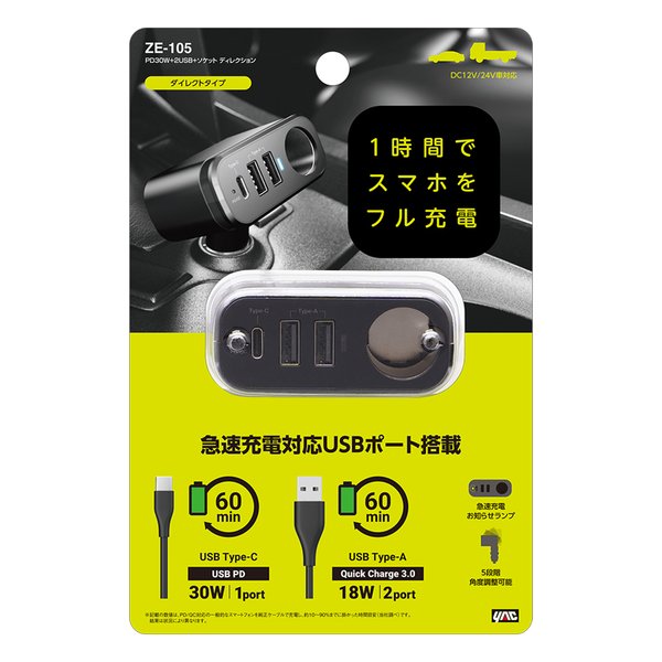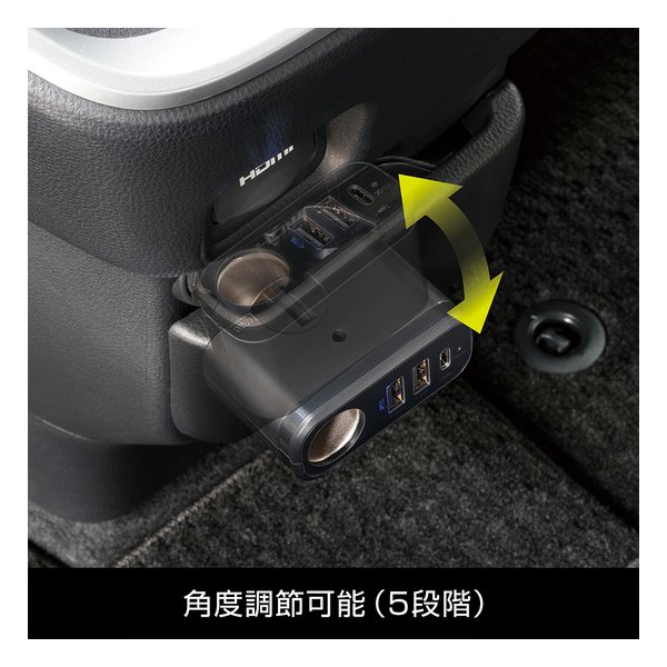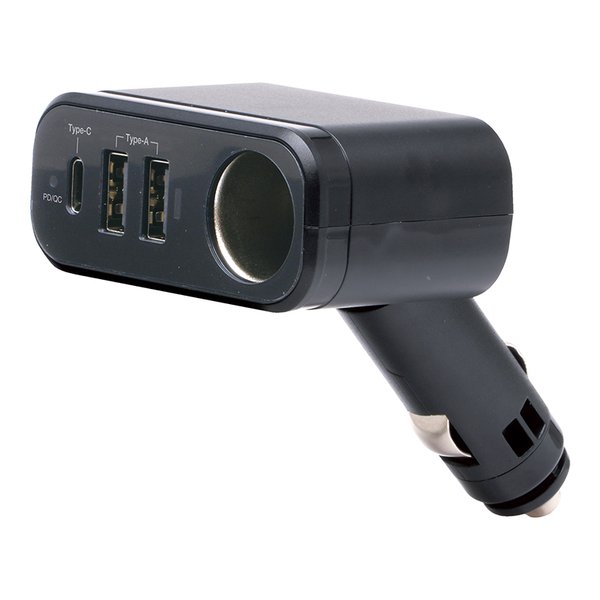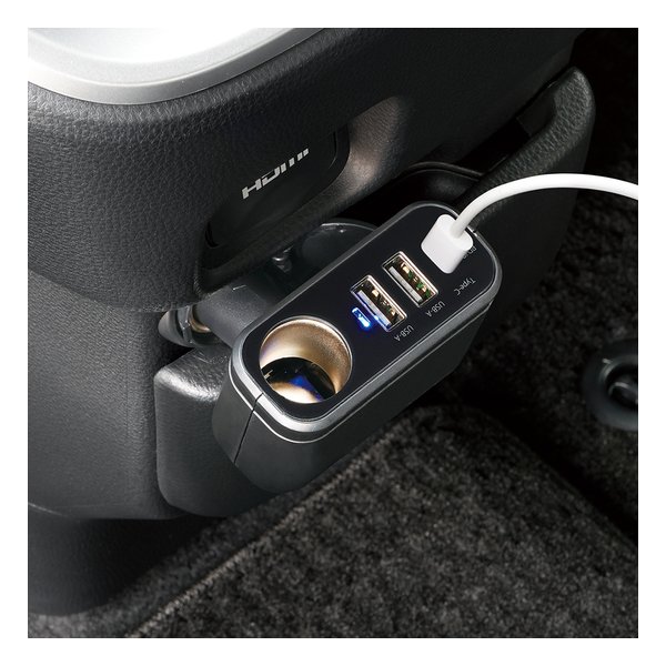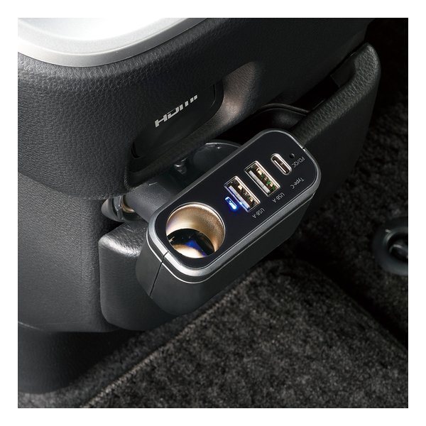 ●ソケット1口と急速充電に対応したUSB Type-Aポート2口・USB Type-Cポート1口を搭載しています。