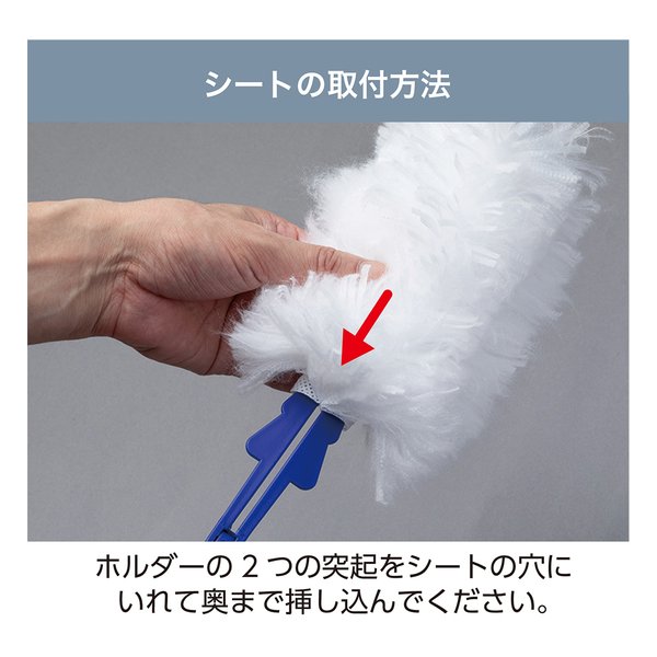 ホルダーの2つの突起をシートの穴にいれて奥まで挿し込んでください。