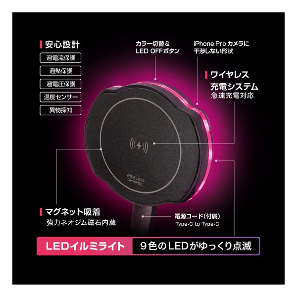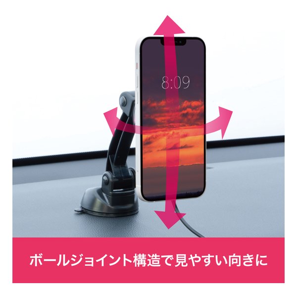 ●iPhone12以降またはマグセーフ対応カバーが付いたスマートフォンを磁力でホールドします。
