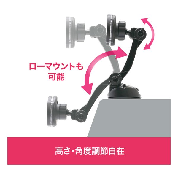 ●ロングアームとボールジョイント構造により、見やすい角度に調節することができます。