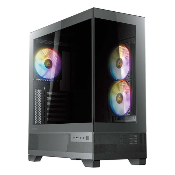 フロントとサイドに柱のないピラーレス構造の「Antec CX700 RGB」を採用。240mm水冷クーラーとARGBファンが織りなすライティングを、270度の広角から楽しむことができます。魅せるPCでありながら、高いエアフロー設計により内部温度を低く保ちます。