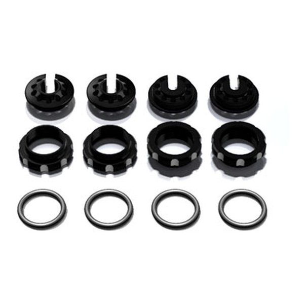 ●マシン1台分(ショック4本)のアルミショックアジャストナットとスプリングエンドをセットにしました。