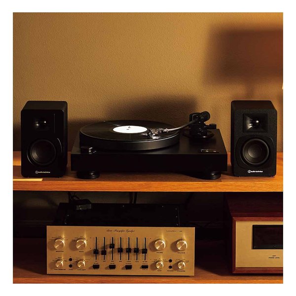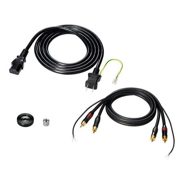 ■付属品:ダストカバー、ラバーマット、プラッター、ダストカバーヒンジ、カウンターウエイト、サブカウンターウエイト、VM型ステレオカートリッジ(AT-VM95E BK)付きヘッドシェル(AT-LT10)、EPアダプター、オーディオケーブル(約1.0m)、電源ケーブル(約1.8m)