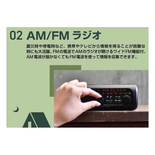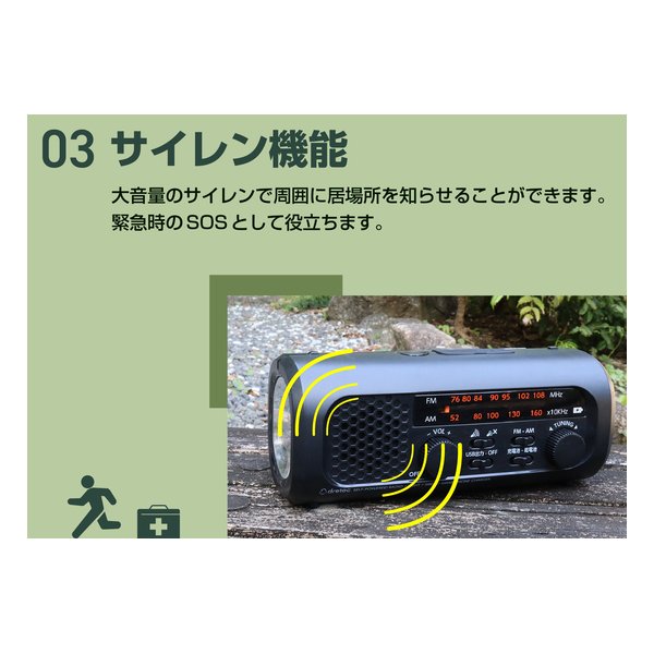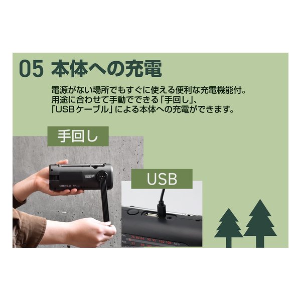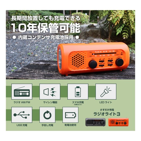 10年保管可能な内蔵コンデンサ充電池を採用(2679813)さすだけ充電ラジオライト3 [ブラック]