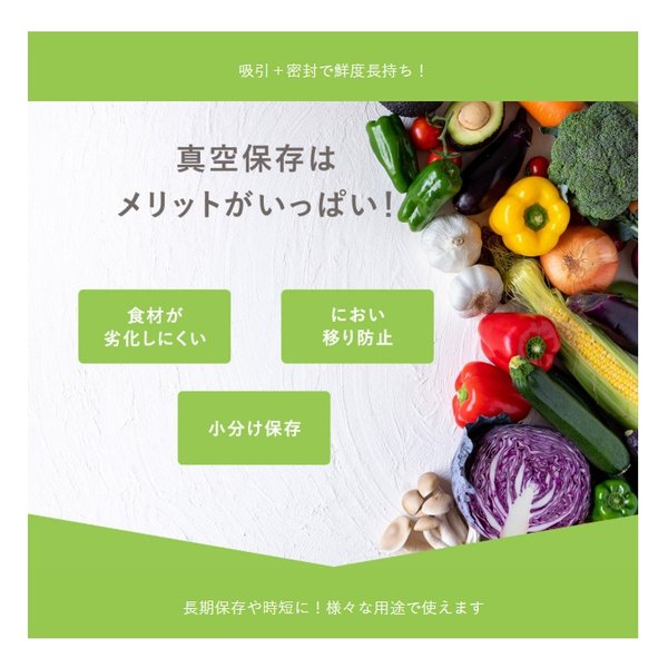 ●やわらかい物やスナック菓子の密封に便利な手動吸引