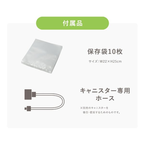 ■付属品:保存袋(10枚)、キャニスター専用ホース(約50cm)
