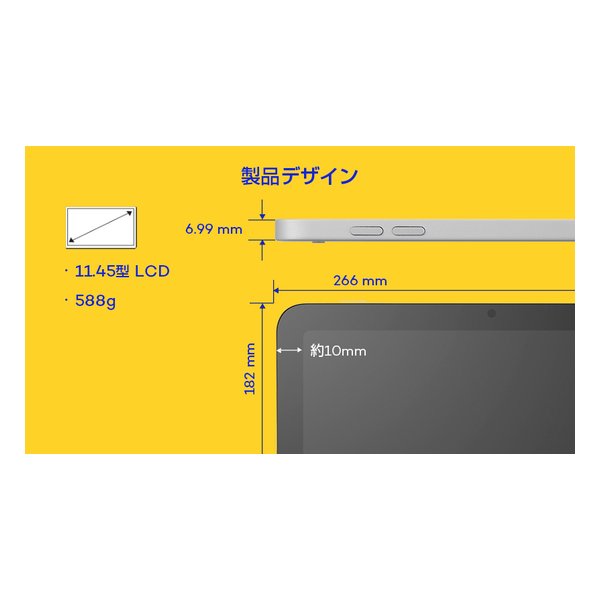 11インチなのに、重さはわずか588グラム。500mlのペットボトルより少し重たいくらいだから気軽にどこへでも持ち運べます。